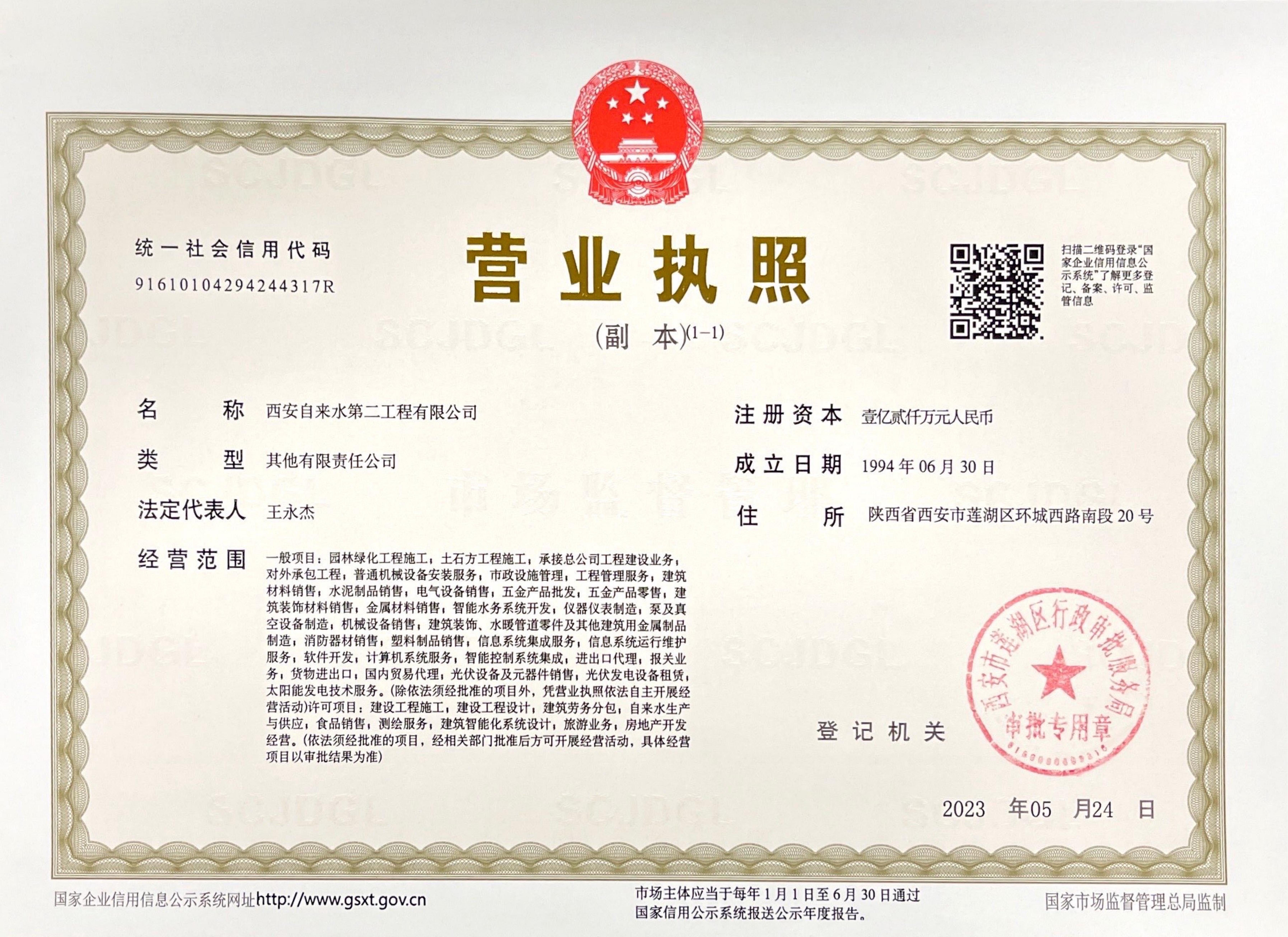 西安自來(lái)水第二工程有限公司是西安供水集團(tuán)下屬的獨(dú)立法人單位。公司成立于1994年,注冊(cè)資金壹億貳仟萬(wàn)元。現(xiàn)有員工180余人,其中具有一級(jí)、二級(jí)注冊(cè)建造師30余人,中、高級(jí)職稱人員70余人。經(jīng)營(yíng)范圍:一般項(xiàng)目:園林綠化工程施工;土石方工程施工;承接總公司工程建設(shè)業(yè)務(wù);對(duì)外承包工程;普通機(jī)械設(shè)備安裝服務(wù);市政設(shè)施管理;工程管理服務(wù);建筑材料銷售:水泥制品銷售;電氣設(shè)備銷售;五金產(chǎn)品批發(fā);五金產(chǎn)品零售;建筑裝飾材料銷售;金屬材料銷售;智能水務(wù)系統(tǒng)開(kāi)發(fā);儀器儀表制造;泵及真空設(shè)備制造;機(jī)械設(shè)備銷售;建筑裝飾、水暖管道零件及其他建筑用金屬制品制造;消防器材銷售;塑料制品銷售;信息系統(tǒng)集成服務(wù);信息系統(tǒng)運(yùn)行維護(hù)服務(wù);軟件開(kāi)發(fā);計(jì)算機(jī)系統(tǒng)服務(wù);智能控制系統(tǒng)集成;進(jìn)出口代理;報(bào)關(guān)業(yè)務(wù);貨物進(jìn)出口;國(guó)內(nèi)貿(mào)易代理;光伏設(shè)備及元器件銷售;光伏發(fā)電設(shè)備租賃;太陽(yáng)能發(fā)電技術(shù)服務(wù)。許可項(xiàng)目:建設(shè)工程施工;建設(shè)工程設(shè)計(jì);建筑勞務(wù)分包;自來(lái)水生產(chǎn)與供應(yīng);食品銷售;測(cè)繪服務(wù);建筑智能化系統(tǒng)設(shè)計(jì);旅游業(yè)務(wù);房地產(chǎn)開(kāi)發(fā)經(jīng)營(yíng)。